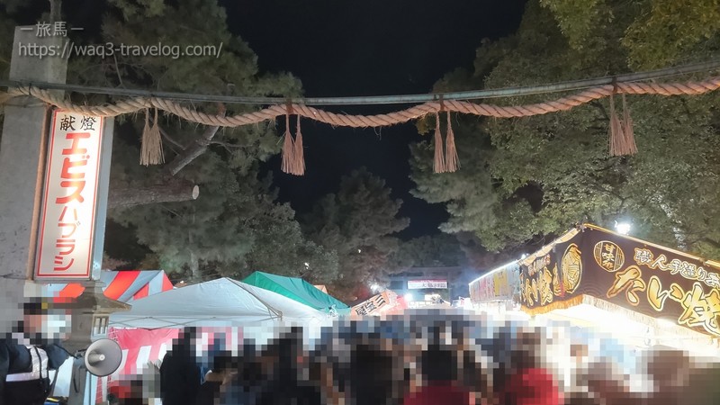 初詣で神戸の湊川神社や長田神社を訪れたのですが、それらとは比べものにならないぐらいの夜店が連なっています。